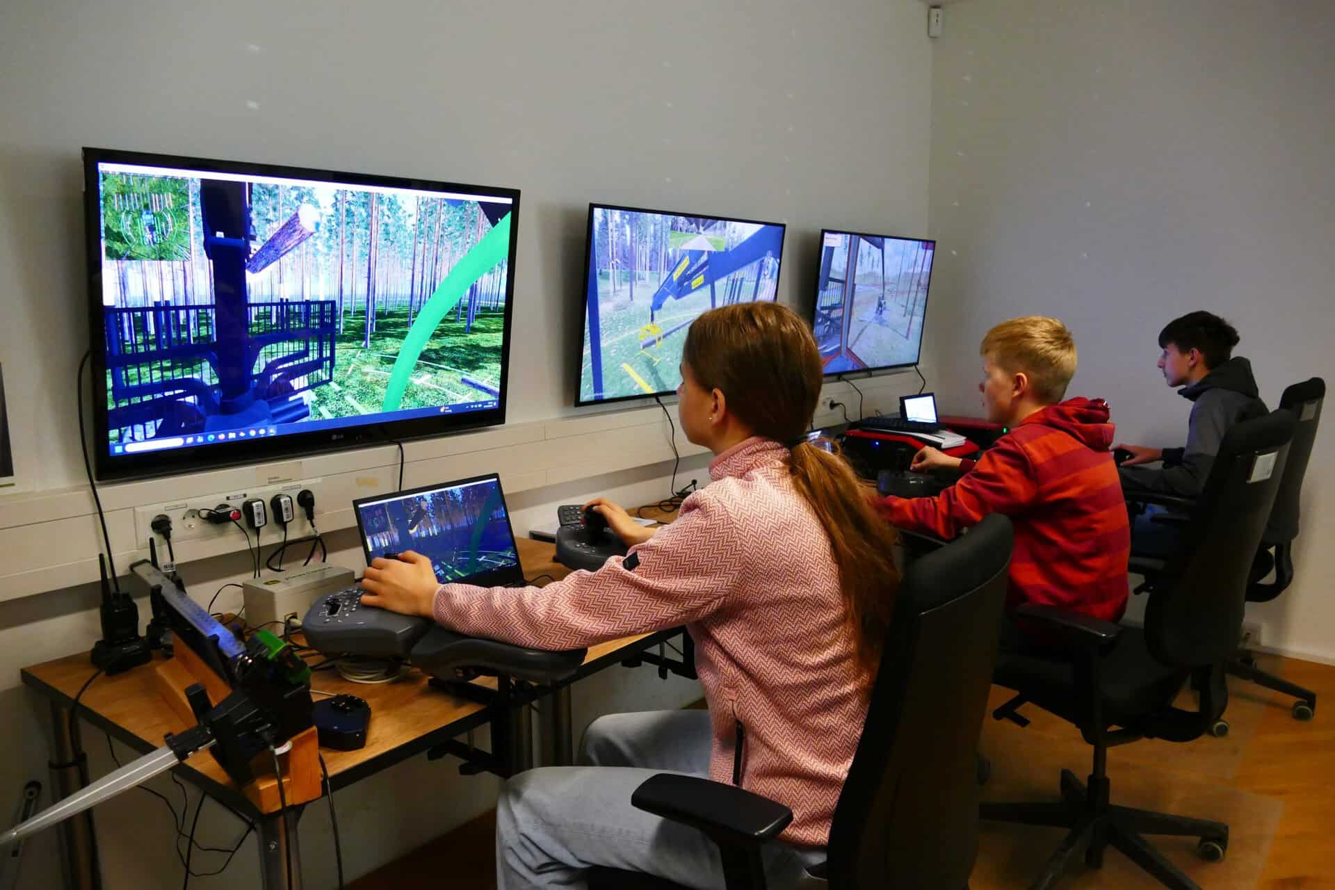 (Münchehof) Berufe mit Zukunft erprobten Jugendliche gestern bei den Niedersächsischen Landesforsten. Zwölf Schüler und zwei Schülerinnen nutzten am Donnerstag in Münchehof die Chance, die Berufswelt Wald kennenzulernen. Das Niedersächsische Forstliche Bildungszentrum (NFBz) hatte gemeinsam mit den Forstämtern Seesen und Riefensbeek den Zukunftstag gestaltet. Maschinenräume, Gerätehallen und Werkstätten waren für die jungen Gäste geöffnet. Sie durften Forstmaschinen per Funkfernbedienung auf dem Freigelände steuern oder an Computersimulatoren virtuell Bäume fällen.