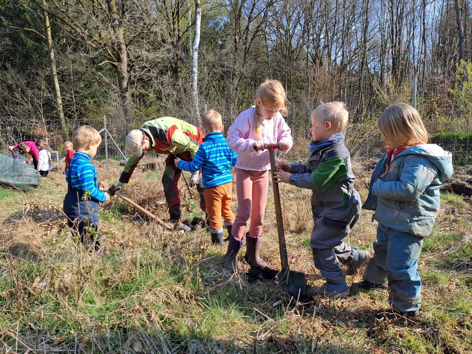 Auch in diesem Jahr unterstützten die Kinder des Waldkindergartens Harpstedt die Forstwirte Nico Kowalski Perez und Heinz Kolweyh tatkräftig bei der Pflanzung. Mit Gummistiefeln und Buddelhosen ausgerüstet, machten sich die Kinder zu Fuß gemeinsam mit ihren Erzieherinnen Nadine de Boer und Sonja Kern auf den Weg zur Pflanzfläche. Nach einem gemeinsamen Frühstück unter freiem Himmel und bei strahlendem Frühlingswetter ging es ans Werk.